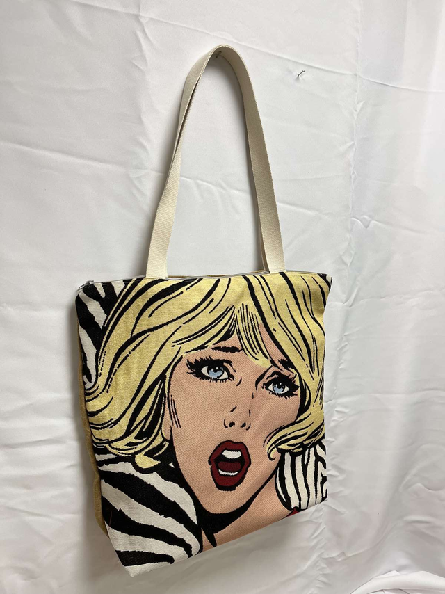 Sac doublé, une poche intérieure, fermeture par zip, deux anses.