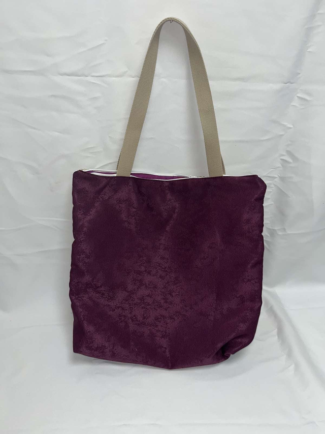 Sac doublé, une poche intérieure, fermeture par zip, deux anses.